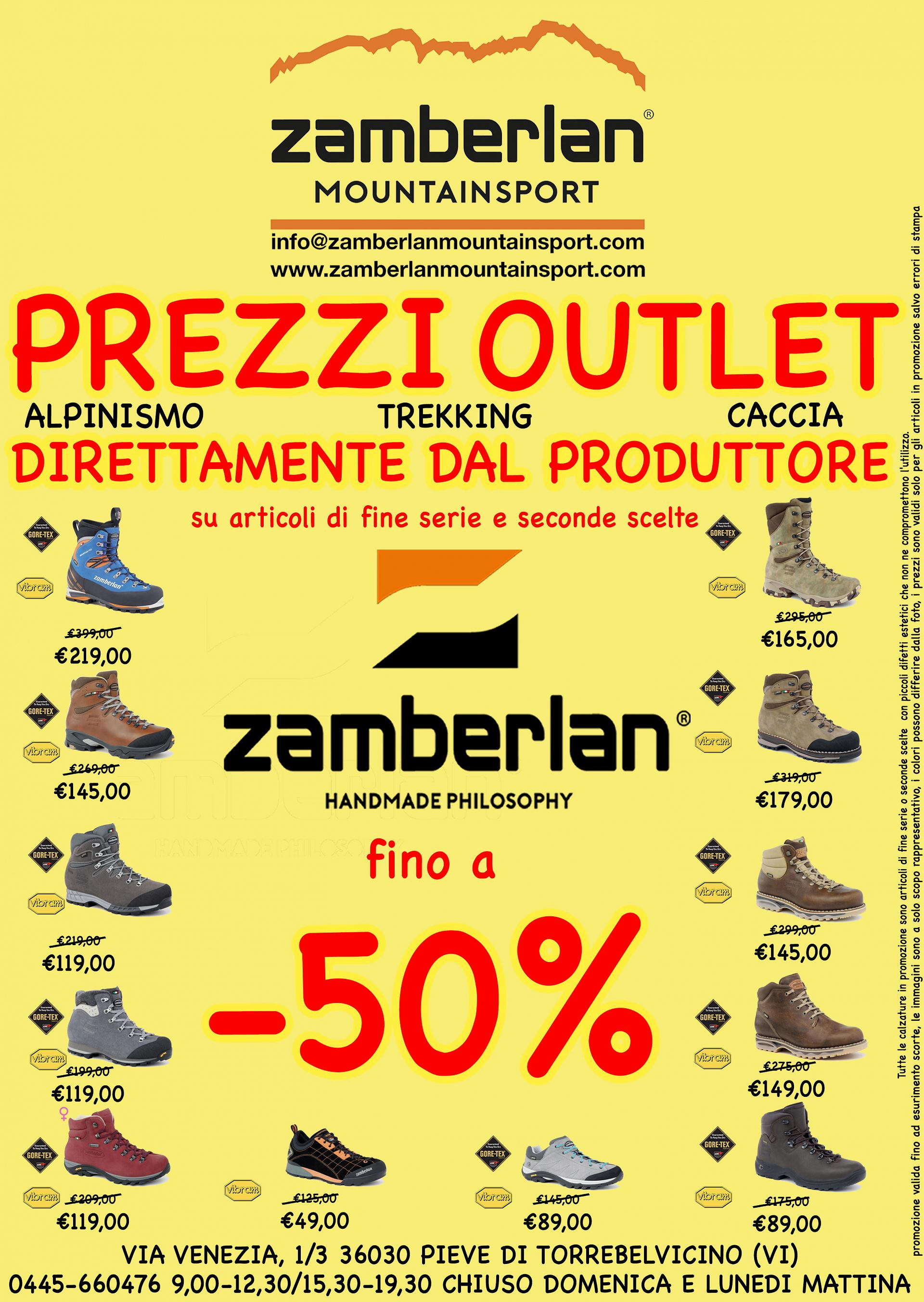 Nuovo reparto OUTLET calzature ZAMBERLAN ® con articoli di fine serie e seconde scelte a prezzi scontati fino al 50%
